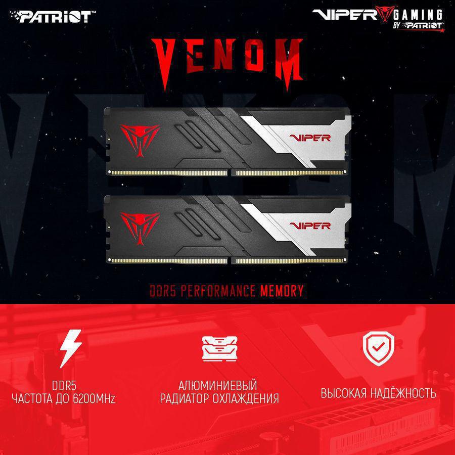 Память DDR5 2x32GB 6400MHz Patriot PVV564G640C32K Viper Venom RTL Gaming PC5-51200 CL32 DIMM 288-pin 1.4В с радиатором Ret