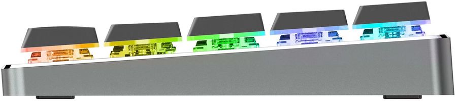 | Особенности | Механическая клавиатура с низкопрофильными свичами. Алюминиевый корпус с резиновыми противоскользящими ножками. Съемный кабель. Регулируемая RGB подсветка. Компактная. Идеальна как для работы так и для игр. |