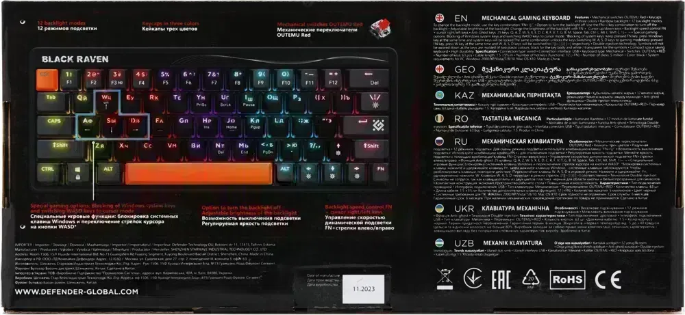 Клавиатура Defender GK-417 механическая черный USB for gamer LED (45414) кабель 1.5м