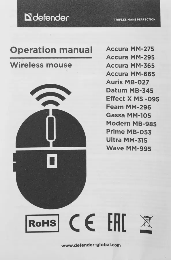 | Размеры мыши | 105x55x38мм |