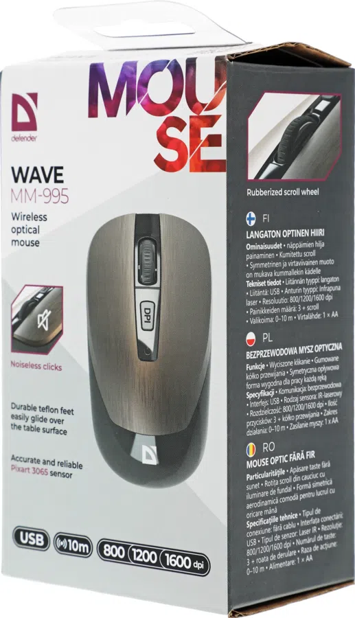 Мышь Defender Wave MM-995 бронзовый оптическая 1600dpi silent беспров. USB для ноутбука 3but (52992)