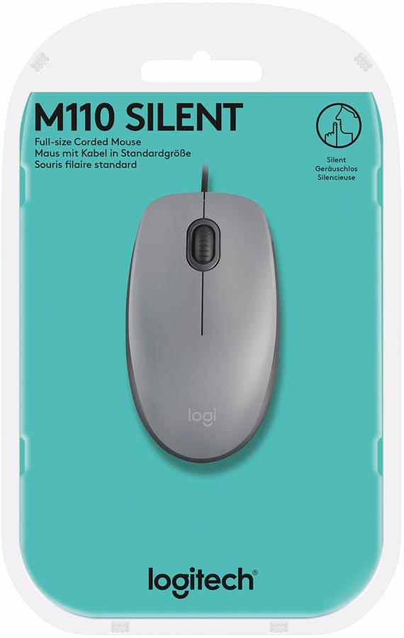 Мышь Logitech M110 Silent серый/темно-серый оптическая 1000dpi silent USB 2but (910-006760)