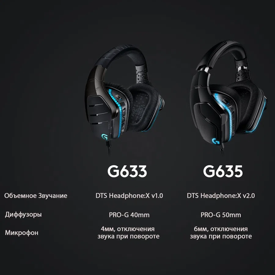 Наушники с микрофоном Logitech G635 Lightsync черный 2.8м накладные оголовье (981-000750)