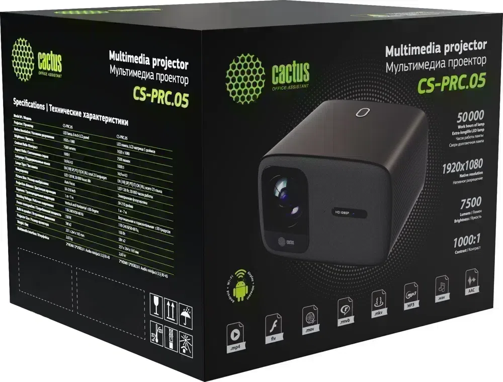 Проектор Cactus CS-PRC.05B.Full HD-A LCD 7500Lm LS 720Lm ANSI (1920x1080) 1000:1 ресурс лампы:50000часов 2xUSB typeA 2xHDMI 2.63кг
