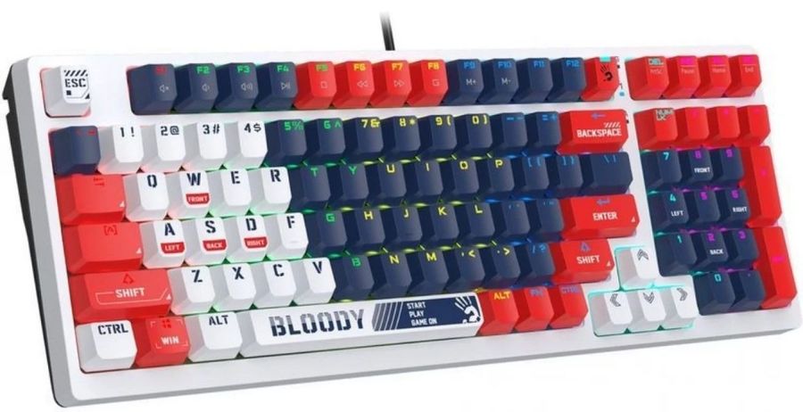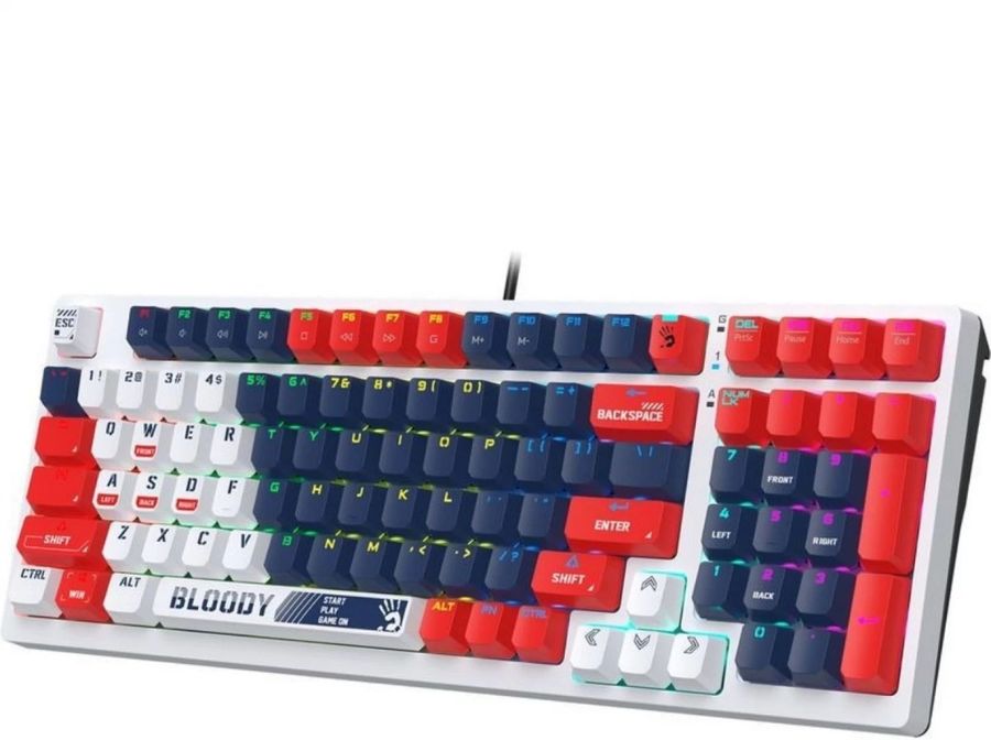 Клавиатура A4Tech S98 Sports механическая синий/белый USB for gamer LED (S98 SPORTS NAVY BLMS RED PLUS) кабель 1.8м