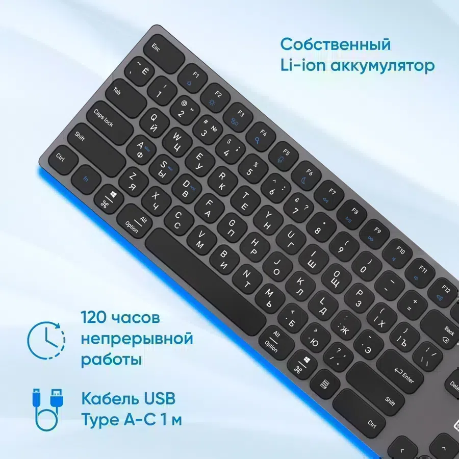 Клавиатура Оклик K867W серый/черный USB беспроводная BT/Radio slim Multimedia (2002130) кабель 1м