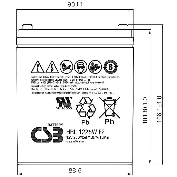 | Особенности | Срок службы: более 8 лет в буферном режиме (10/12 лет при 20°С по классификации Eurobat) или более 260 циклов заряда-разряда в циклическом режиме при 100% разряде. |