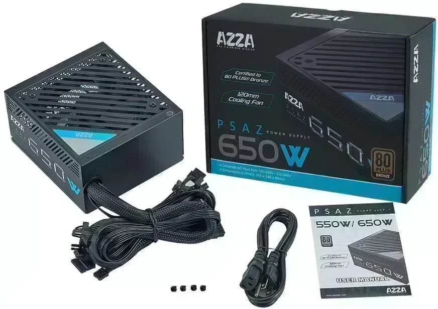 Блок питания Azza ATX 650W PSAZ-650B 80+ bronze (20+4pin) APFC 120mm fan 5xSATA RTL