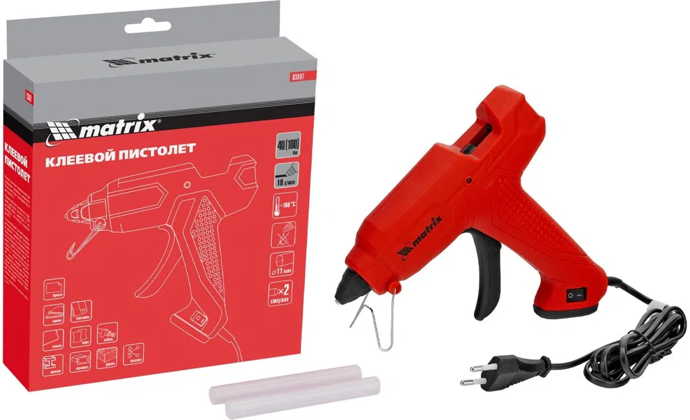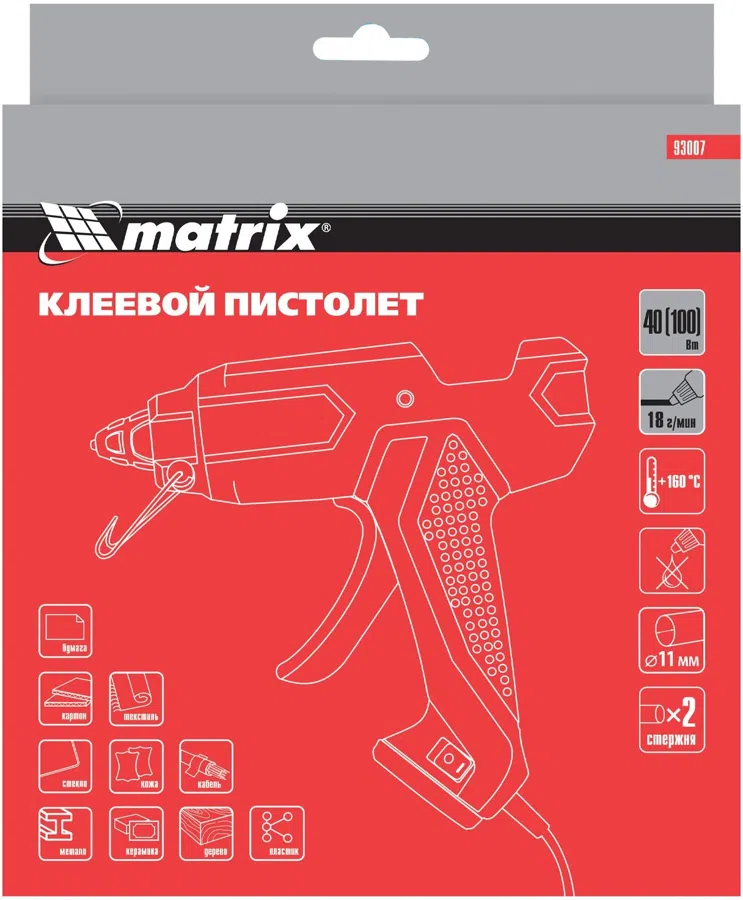 Клеевой пистолет Matrix 93007 100Вт 18гр/мин стерж.:11мм