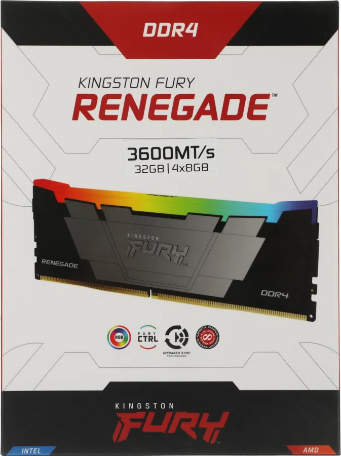 Память DDR4 4x8GB 3600MHz Kingston KF436C16RB2AK4/32 Fury Renegade RGB RTL Gaming PC4-28800 CL16 DIMM 288-pin 1.35В single rank с радиатором Ret