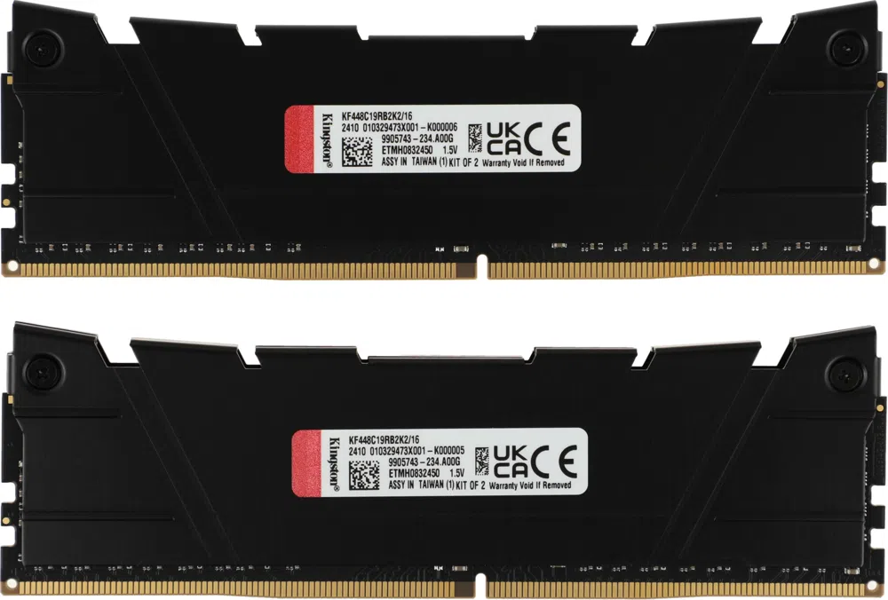 Память DDR4 2x8GB 4800MHz Kingston KF448C19RB2K2/16 Fury Renegade Black RTL Gaming PC4-38400 CL19 DIMM 288-pin 1.5В kit single rank с радиатором Ret