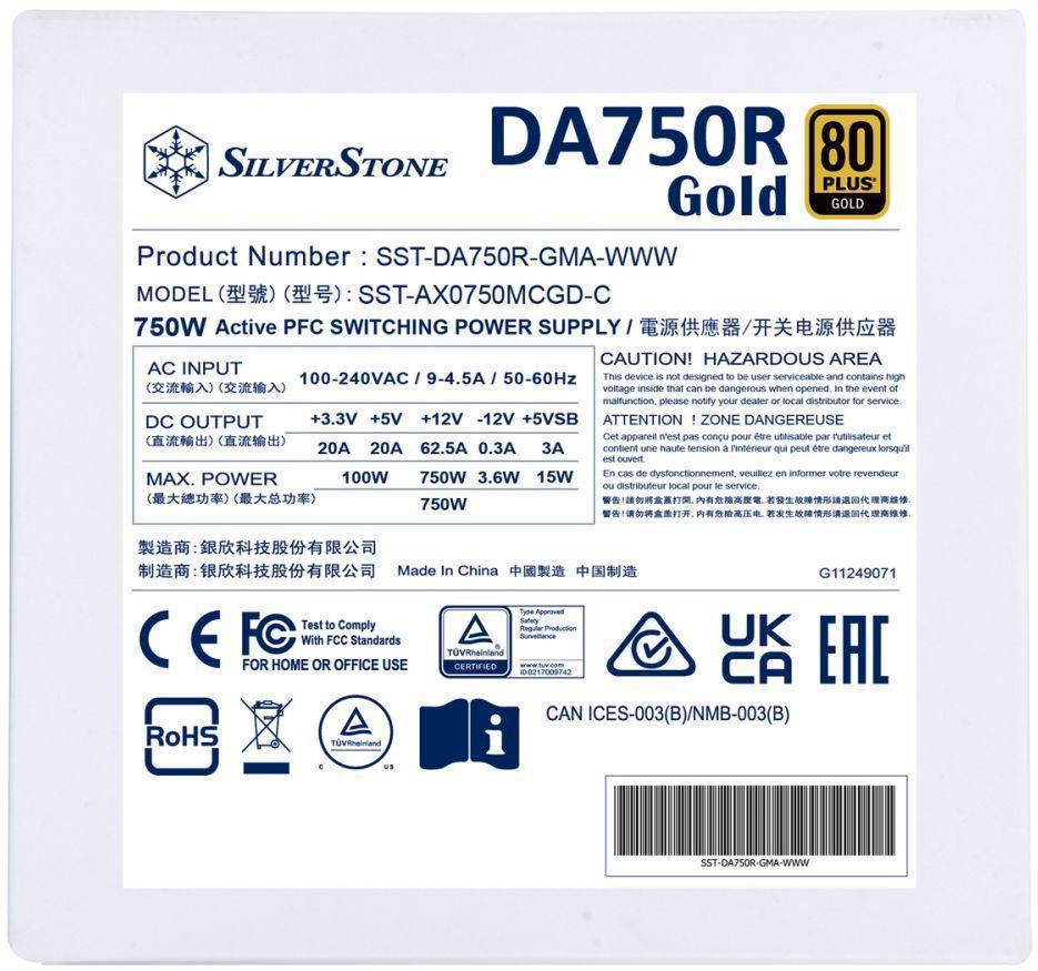 Блок питания Silverstone ATX 750W Decathlon DA750R 80+ gold (20+4pin) APFC 120mm fan 8xSATA Cab Manag RTL