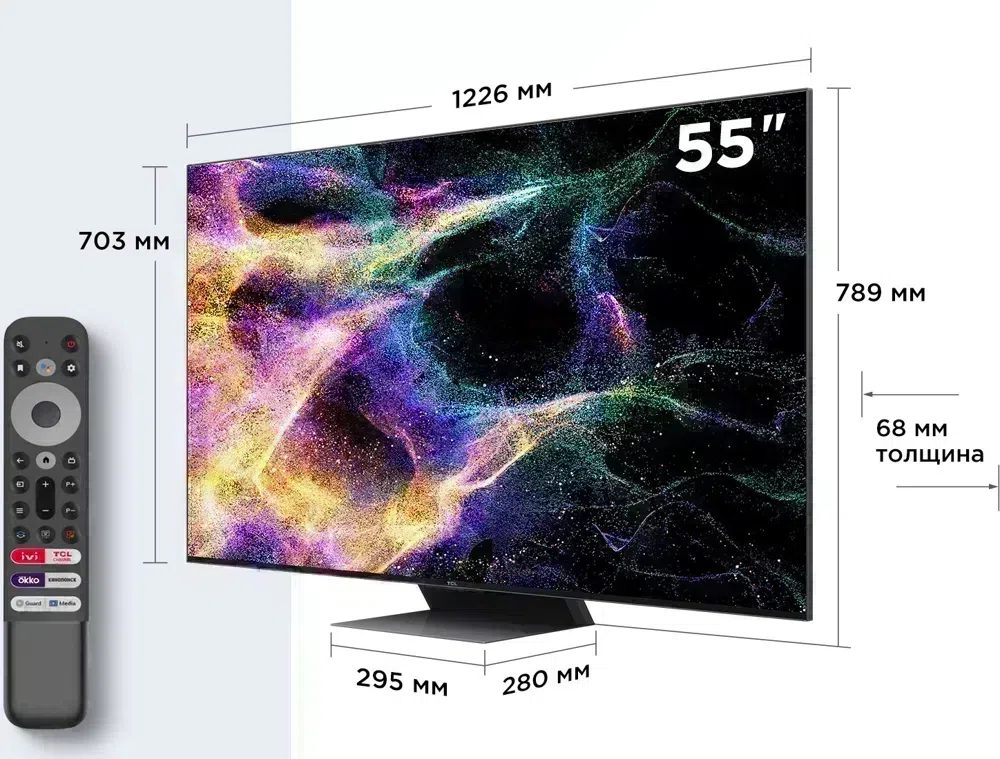 Телевизор QLED TCL 55" 55C845 черный 4K Ultra HD 120Hz DVB-T DVB-T2 DVB-C DVB-S DVB-S2 USB WiFi Smart TV