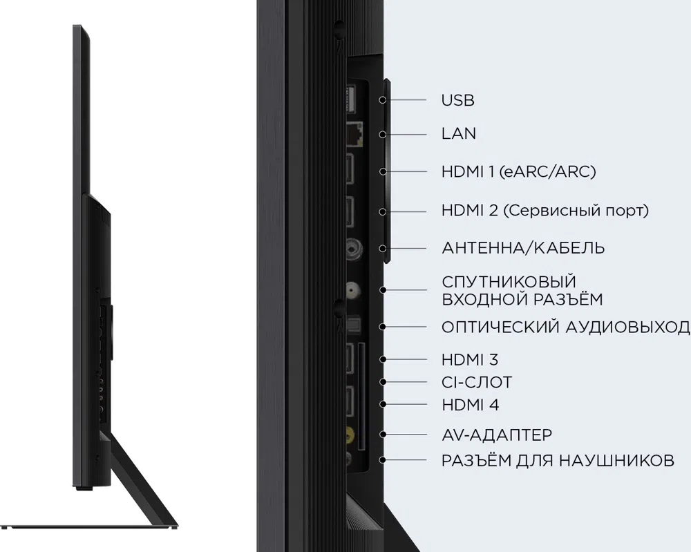 | Разъемы и интерфейсы | CI+/PCMCIA, HDMI, RJ-45 (Ethernet), S/PDIF (оптический), USB Type-A, композитный (видео), стерео-аудио |