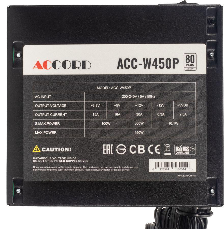 Блок питания Accord ATX 450W ACC-W450P 80+ white (20+4pin) APFC 120mm fan 6xSATA RTL
