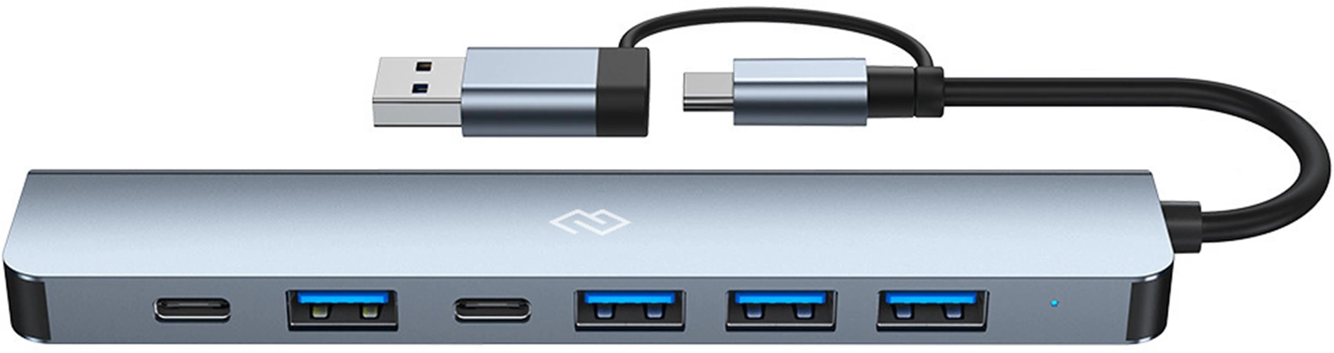 | Особенности | Подключение USB Type-C+USB-A . 7 портов - 1xUSB 3.0, 4xUSB 2.0, 1xUSB-C 2.0, 1xUSB-C для доп питания |