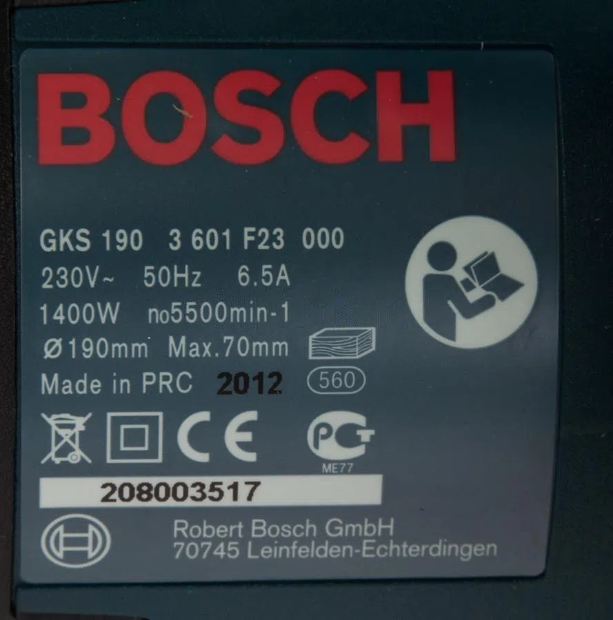 Циркулярная пила (дисковая) Bosch GKS 190 Professional 1400Вт (ручная) D диска.:190мм (0601623000)