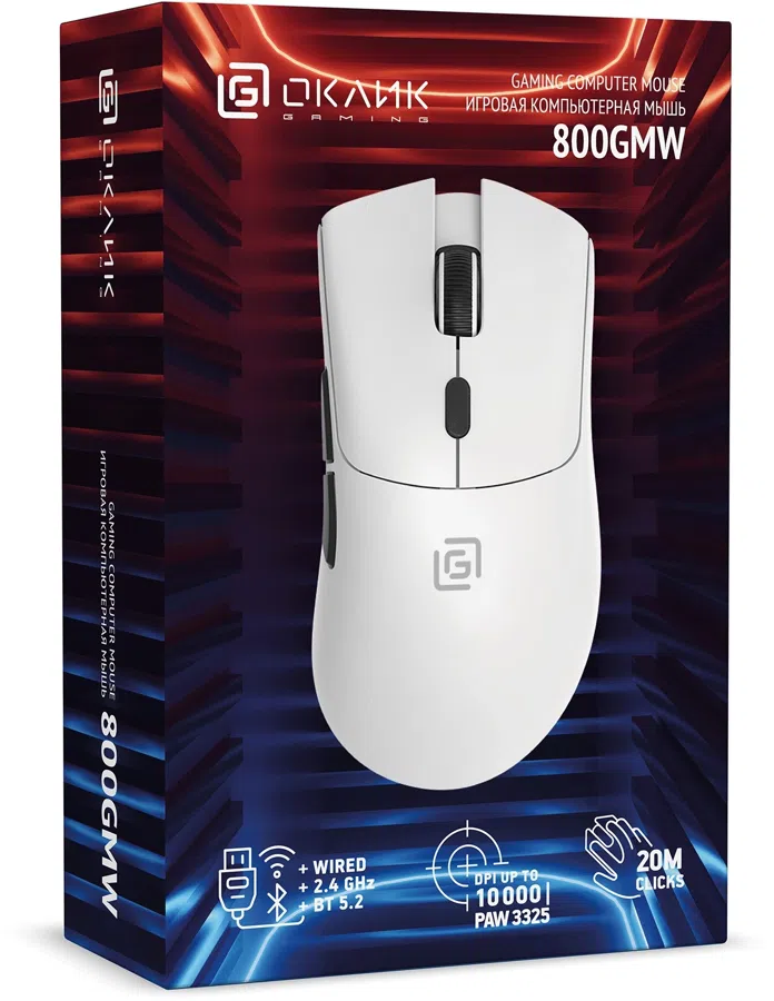 Мышь Оклик 800GMW черный/черный оптическая 10000dpi беспров. BT/Radio USB 6but