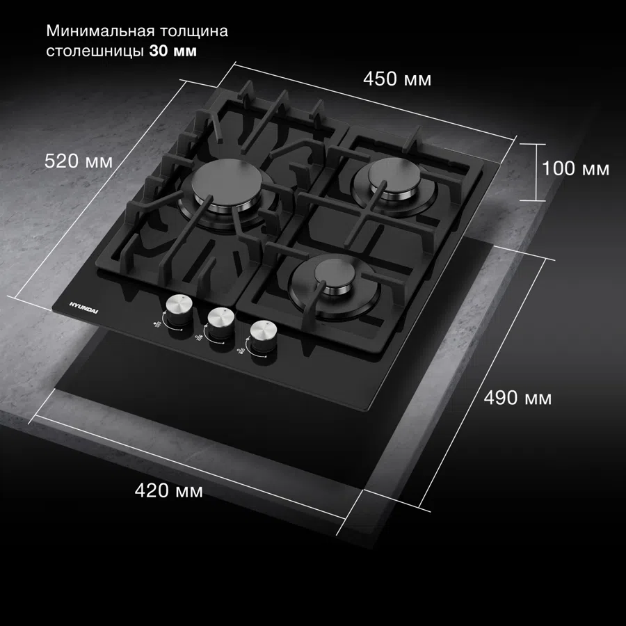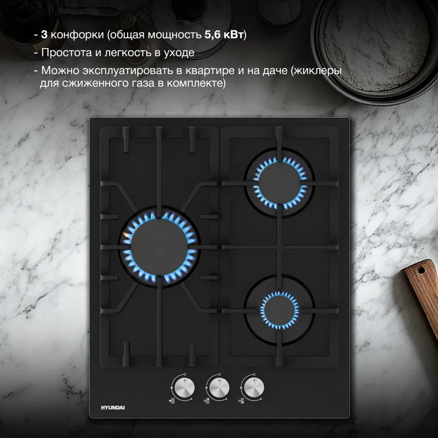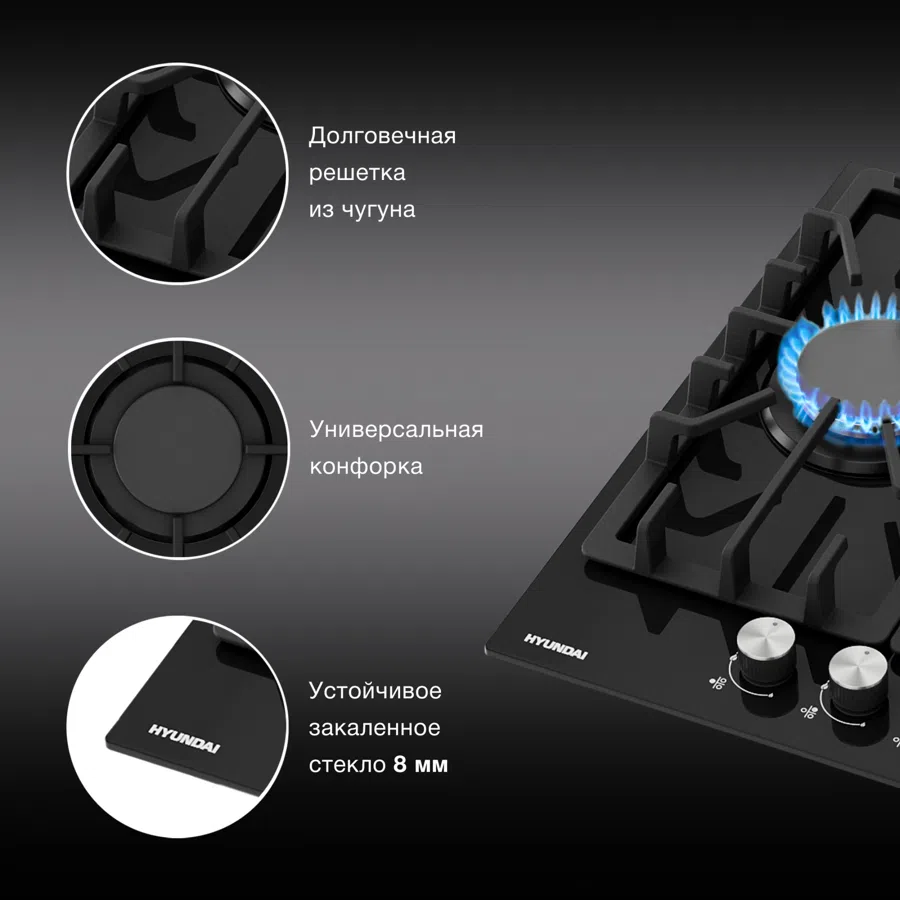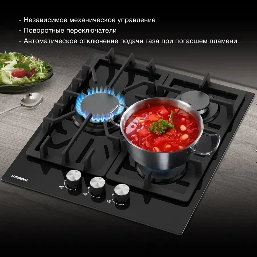 Газовая варочная поверхность Hyundai HHG 4333 BG черный