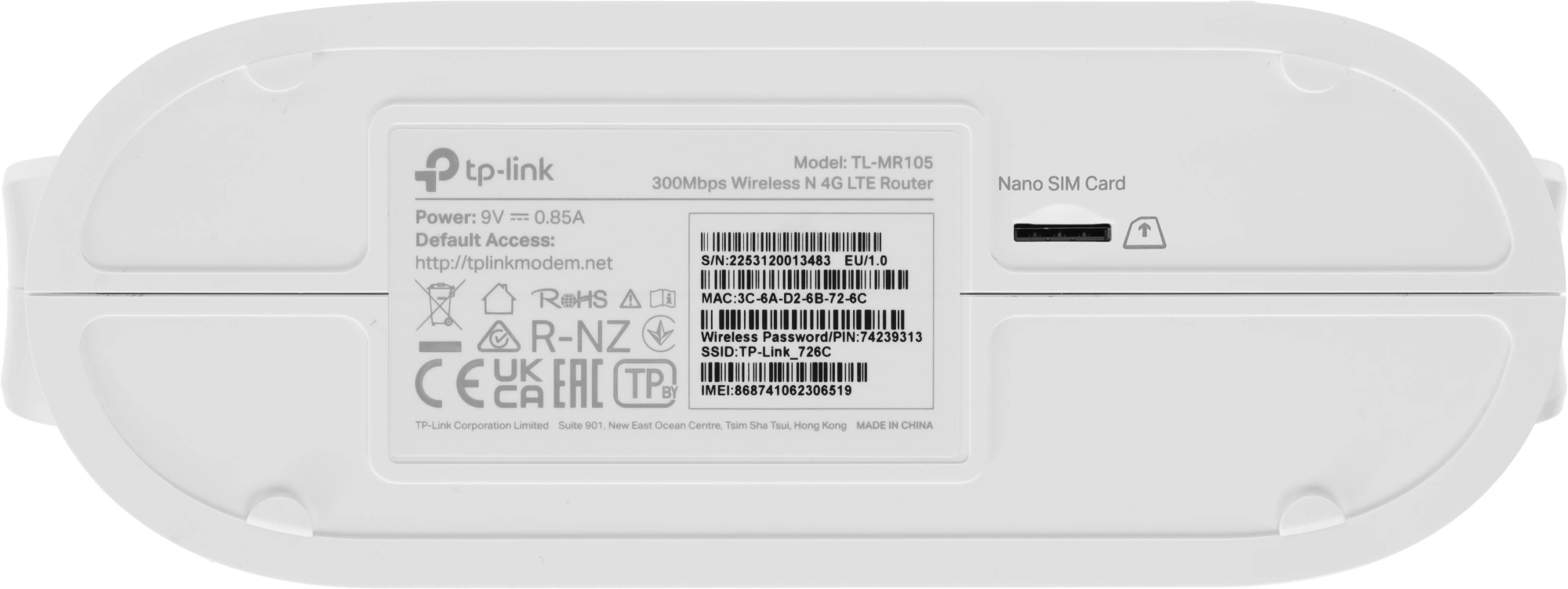 Роутер беспроводной TP-Link TL-MR105 N300 10/100BASE-TX/4G cat. 4 белый