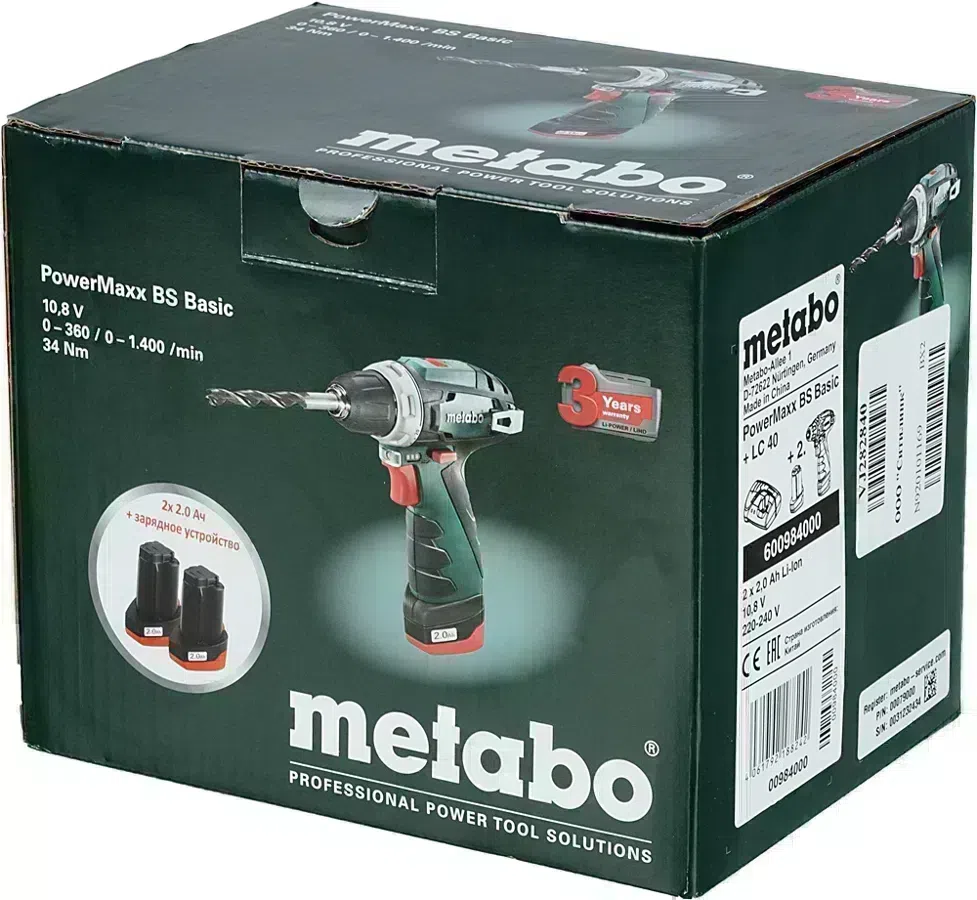Дрель-шуруповерт Metabo PowerMaxx BS аккум. патрон:быстрозажимной (600984000)