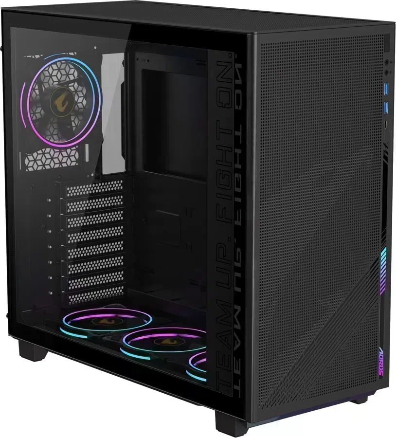 | Особенности | посадочные места верхней панели совместимы с двумя вентиляторами 140 мм,дополнительные 3 места для установки 3.5" HDD вместо вентиляторов нижней панели,встроенный контроллер PWN/ARGB |
