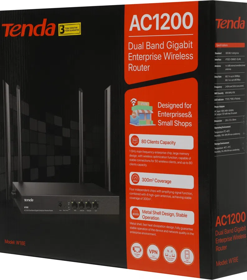 Роутер беспроводной Tenda W18E AC1200 10/100/1000BASE-TX черный