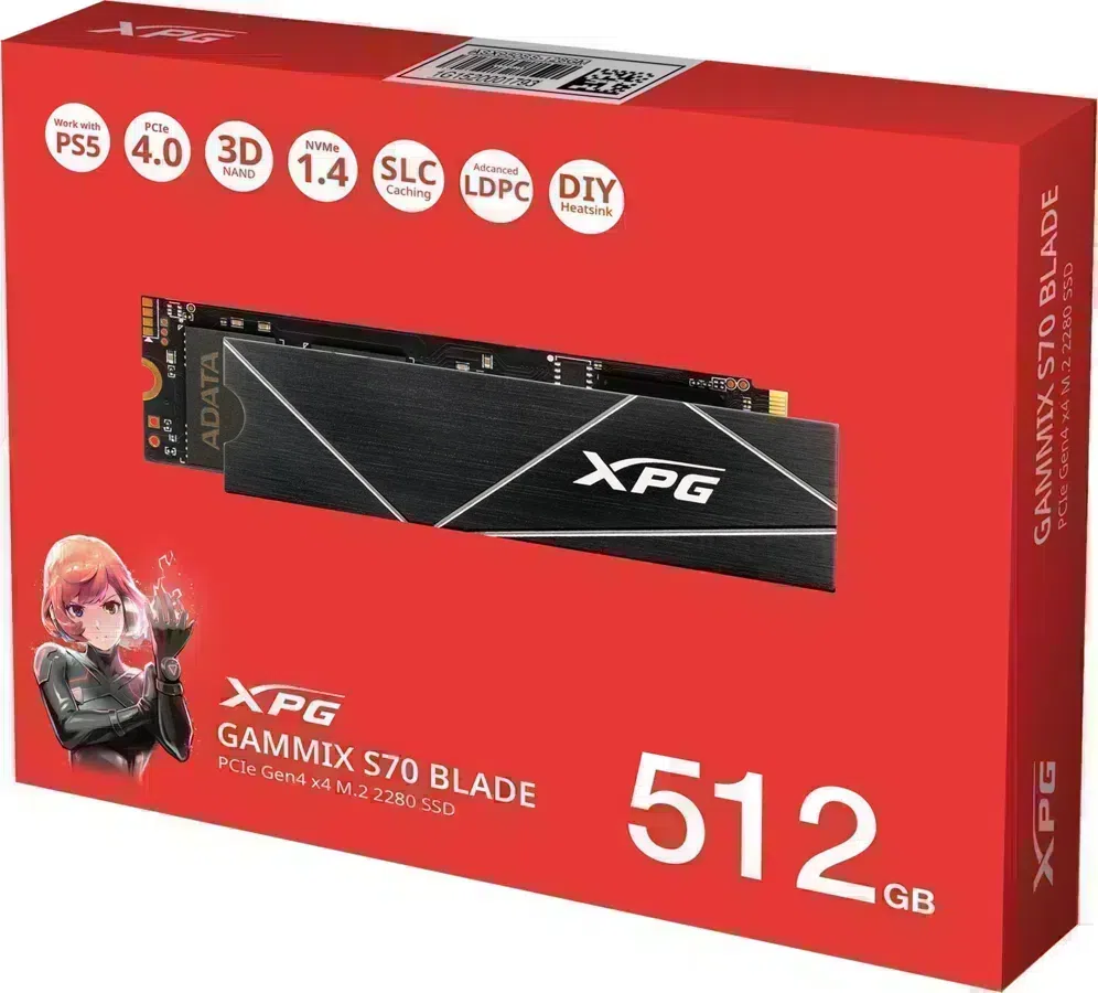 Накопитель SSD A-Data PCIe 4.0 x4 512GB AGAMMIXS70B-512G-CS XPG Gammix S70 Blade M.2 2280
