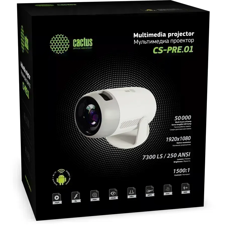 Проектор Cactus CS-PRE.01B.Full HD-A LCD 7300Lm LS 250Lm ANSI (1920x1080) 1500:1 ресурс лампы:50000часов 1xUSB typeA 1xHDMI 1кг