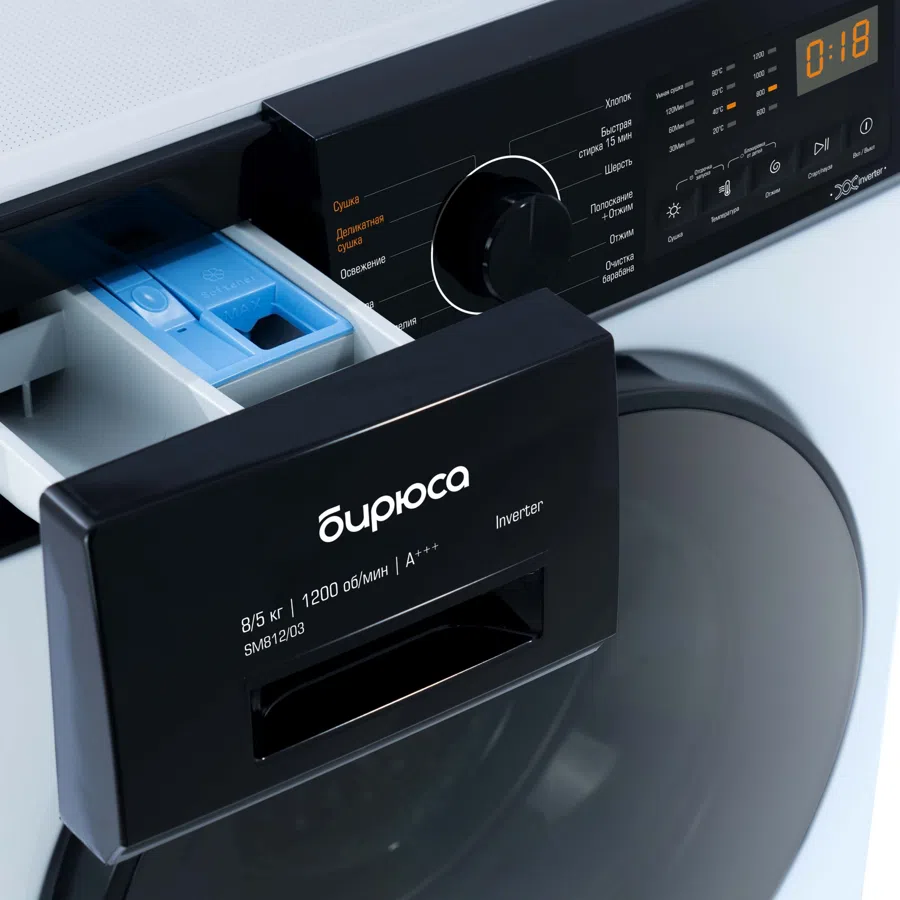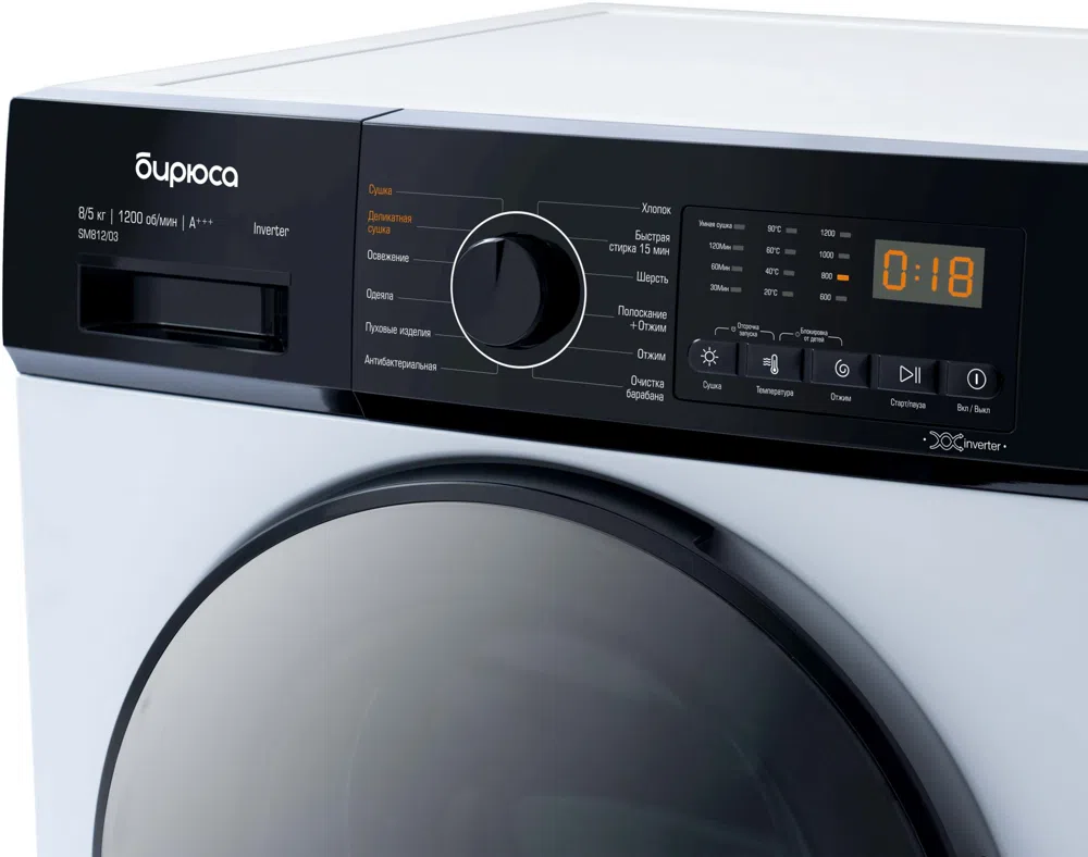 Стиральная машина Бирюса WMD-SM812/03 класс: A+++ загр.фронтальная макс.:8кг (с сушкой) белый инвертор