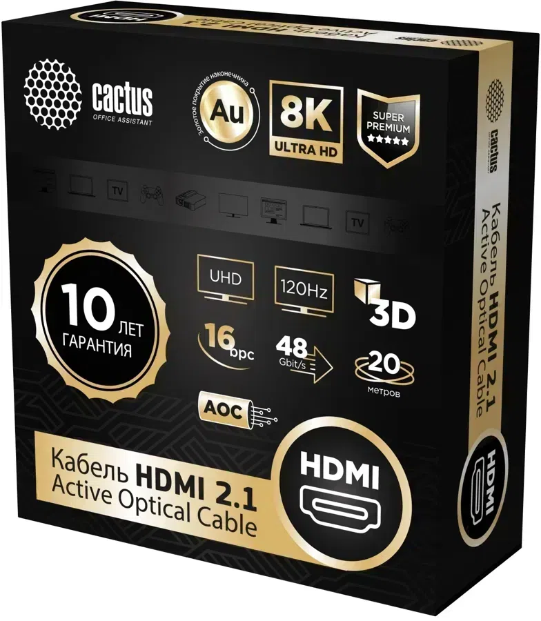 Кабель аудио-видео Cactus CS-HDMI-AOC-2.1-20 HDMI (m)/HDMI (m) 20м. позолоч.конт. черный