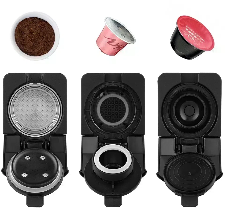 | Особенности | Кофеварка «3 в 1»: капсулы типа Nespresso Original и Dolce Gusto, молотый кофе |