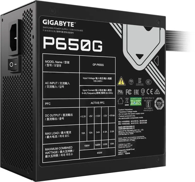 Блок питания Gigabyte ATX 650W GP-P650G 80+ gold (20+4pin) APFC 120mm fan 6xSATA RTL