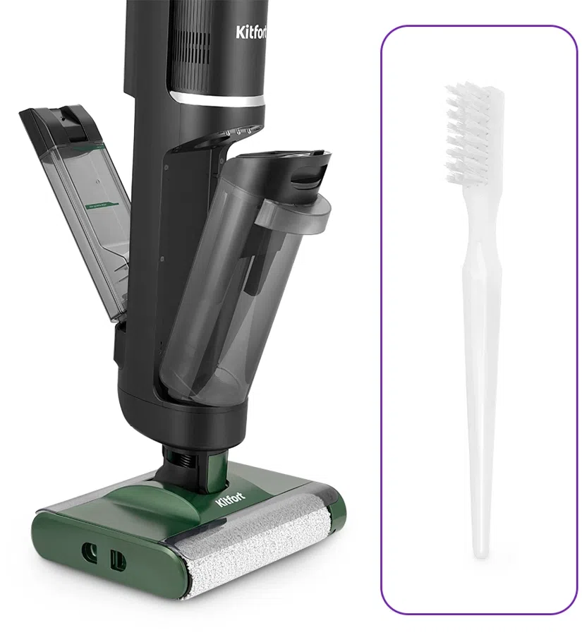 | Описание | Вертикальный беспроводной моющий пылесос КТ-5259 очень удобен для проведения сухой и влажной уборки. По умолчанию устройство подает воду на валики турбощётки. Для сильных загрязнений предусмотрена усиленная подача воды. |