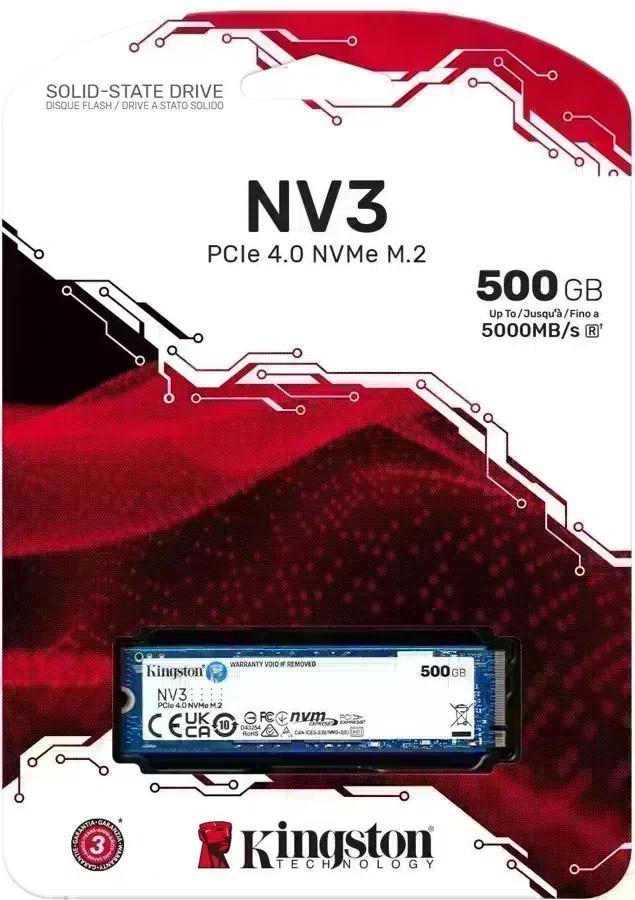 Накопитель SSD Kingston PCIe 4.0 x4 500GB SNV3S/500G NV3 M.2 2280 5000/3000