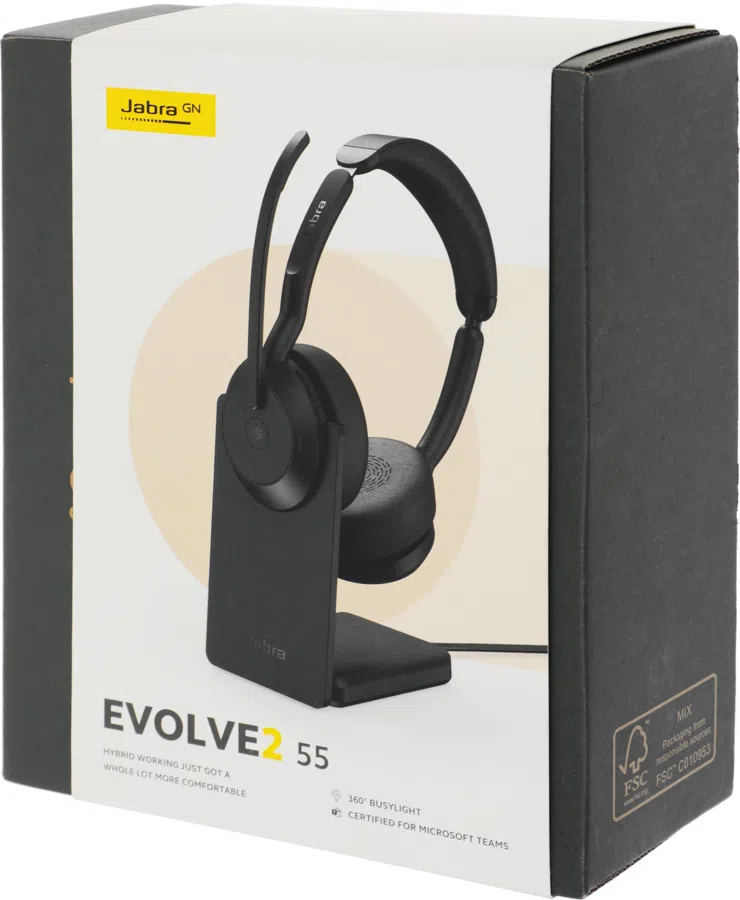 Наушники с микрофоном Jabra Evolve2 55 Link380c MS Stand черный накладные BT оголовье (25599-999-889)
