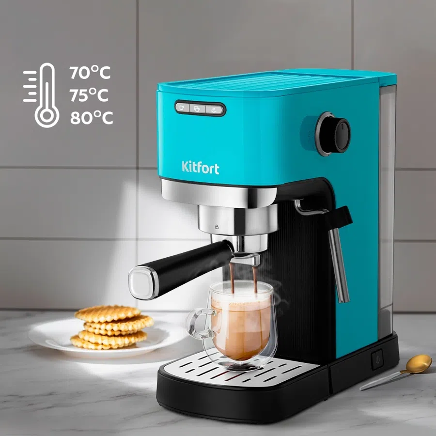 Кофеварка рожковая Kitfort КТ-7461 1350Вт бирюзовый/черный