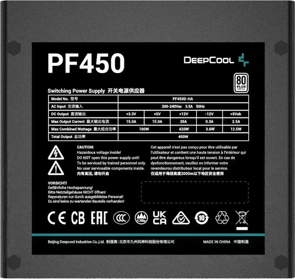 Блок питания Deepcool ATX 450W PF450 80+ white (20+4pin) APFC 120mm fan 6xSATA RTL