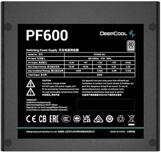 Блок питания Deepcool ATX 600W PF600 80+ white (20+4pin) APFC 120mm fan 6xSATA RTL
