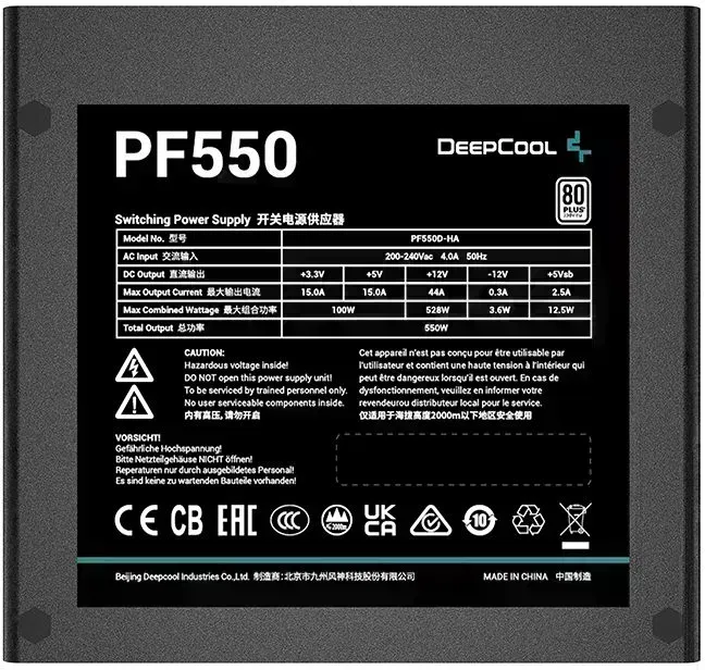 Блок питания Deepcool ATX 550W PF550 80+ white (20+4pin) APFC 120mm fan 6xSATA RTL
