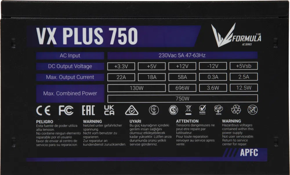 Блок питания Formula ATX 750W AC VX PLUS (20+4pin) APFC 120mm fan 4xSATA RTL