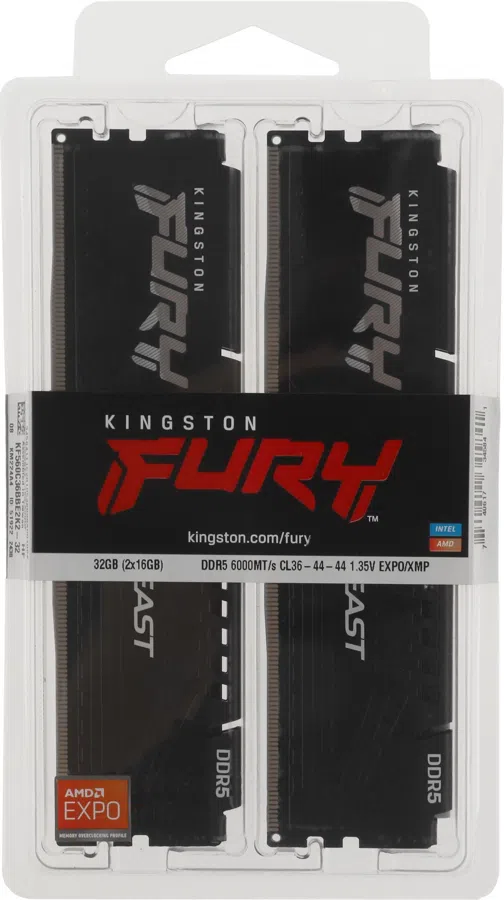 Память DDR5 2x16GB 6000MHz Kingston KF560C36BBE2K2-32 Fury Beast RTL Gaming PC5-48000 CL36 DIMM 288-pin 1.35В kit single rank с радиатором Ret