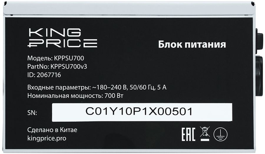 Блок питания KingPrice ATX 700W KPPSU700 (20+4pin) APFC 120mm fan 4xSATA