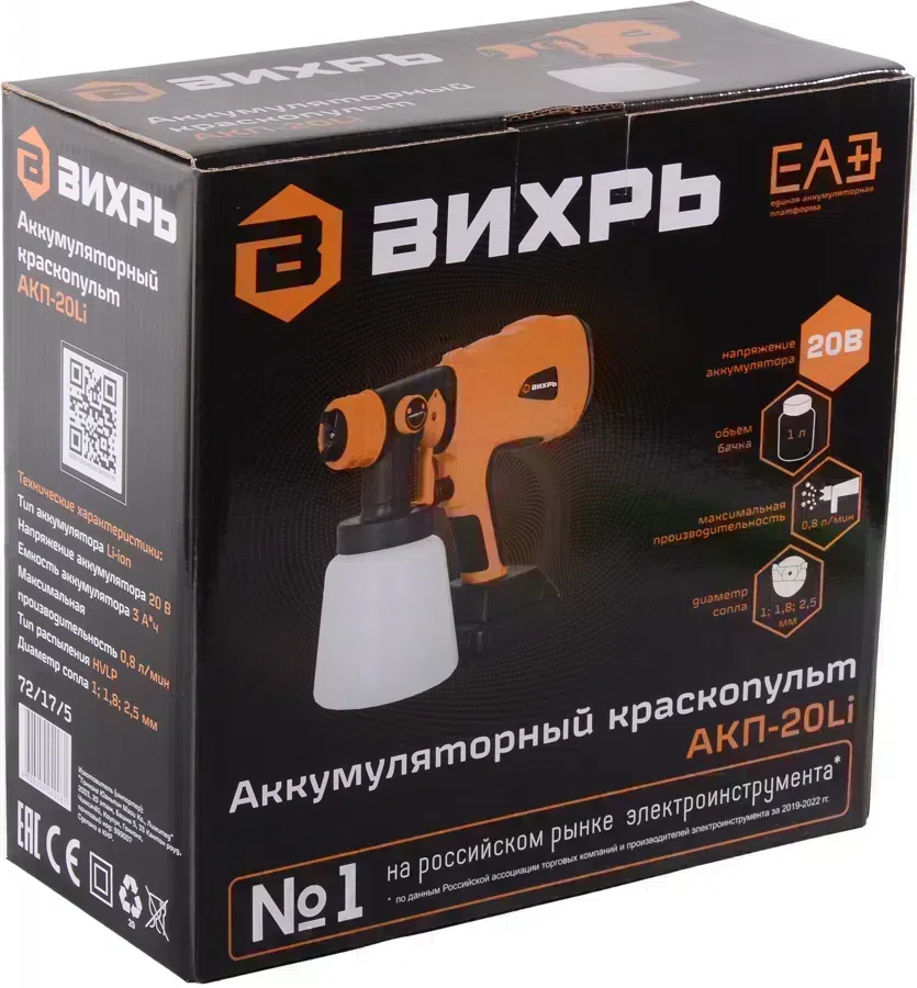 Краскопульт Вихрь АКП-20Li бак:1000мл 800мл/мин