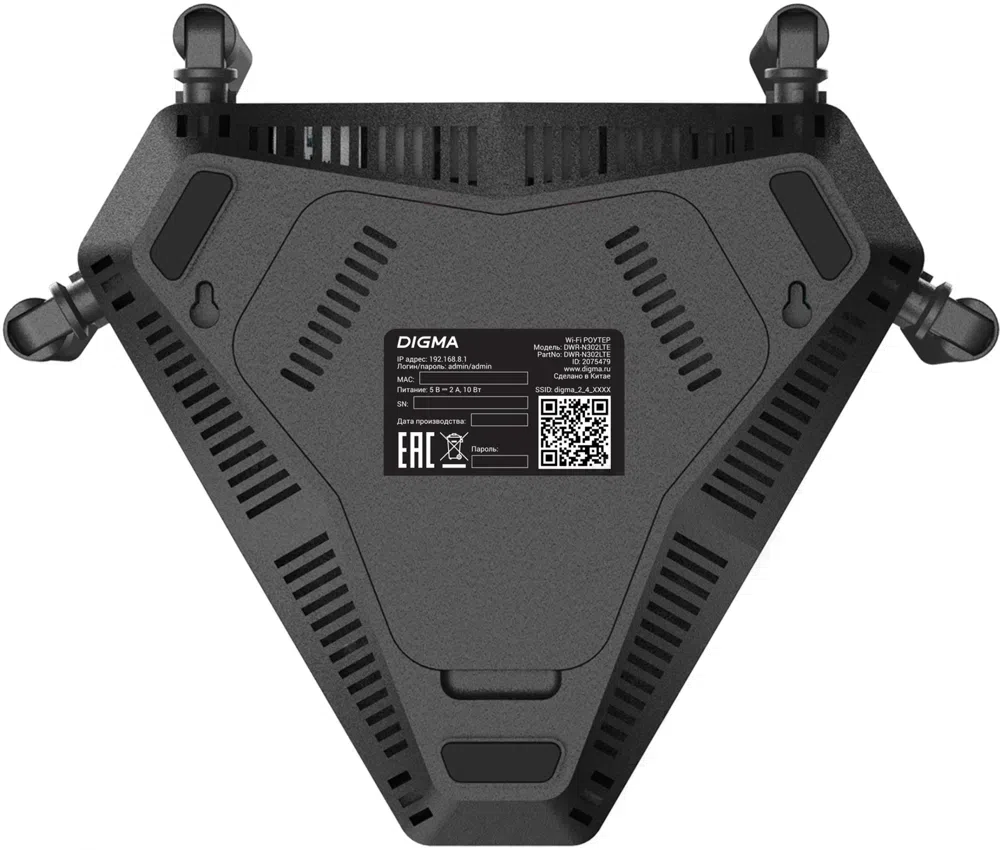 Роутер беспроводной Digma DWR-N302LTE N300 10/100BASE-TX/3G/4G cat. 4 черный