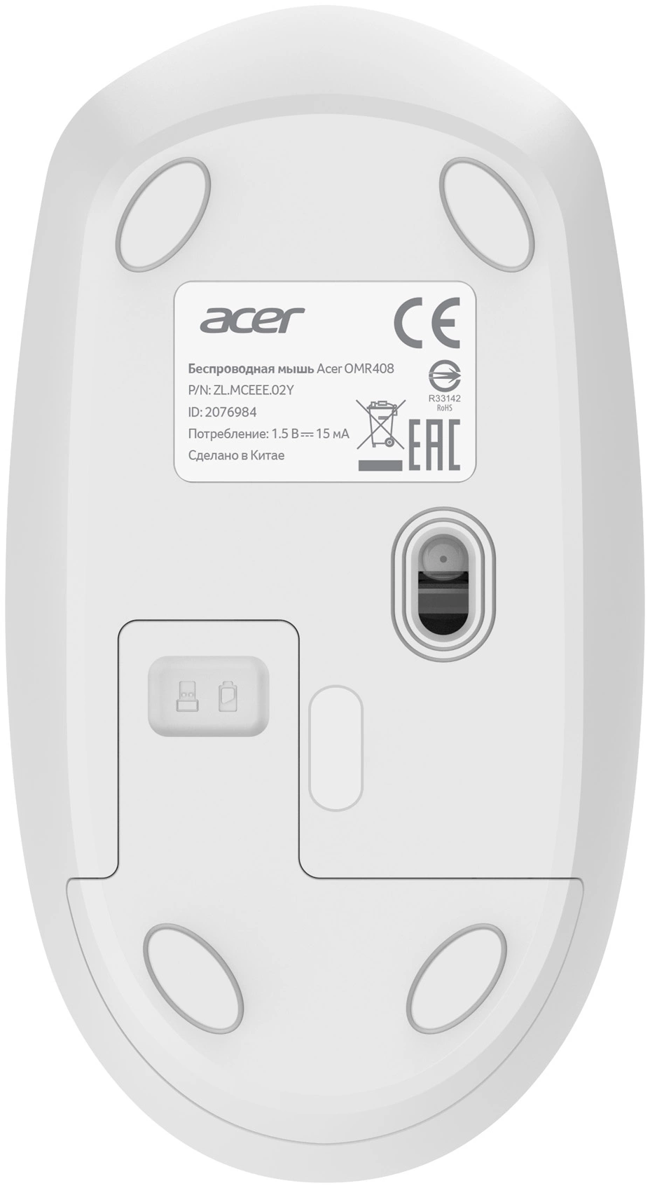 Мышь Acer OMR408 белый оптическая 1600dpi беспров. USB для ноутбука 4but (ZL.MCEEE.02Y)
