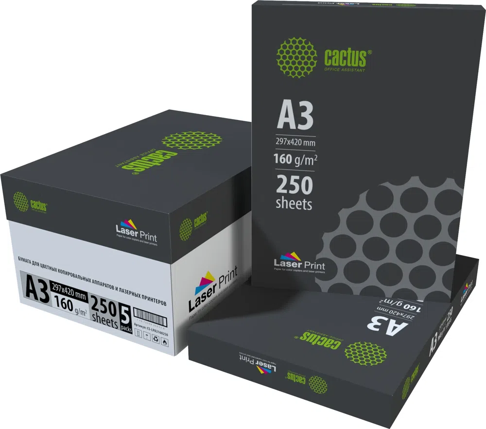 Бумага Cactus CS-LPA3160250 A3 марка A/160г/м2/250л./белый CIE170% для лазерной печати