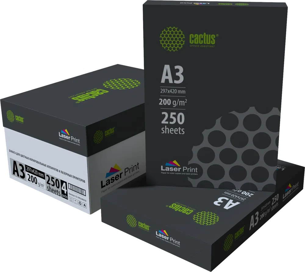 Бумага Cactus CS-LPA3200250 A3 марка A/200г/м2/250л./белый CIE170% для лазерной печати