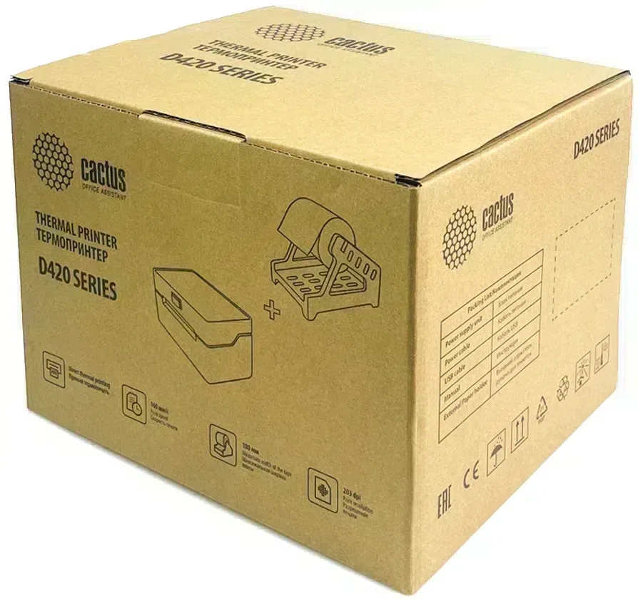 Термопринтер Cactus CS-TP-D420U+держатель (CS-TP-D420U) 203dpi 160мм/с/USB для печ.этик. черный