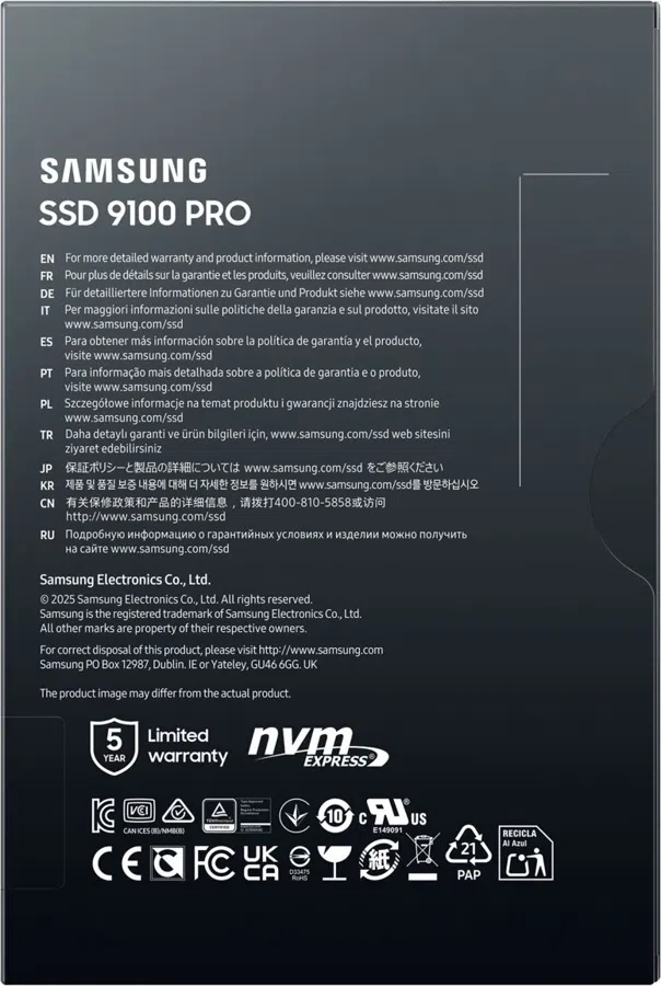 Накопитель SSD Samsung PCIe 5.0 x4 4TB MZ-VAP4T0BW 9100 PRO M.2 2280